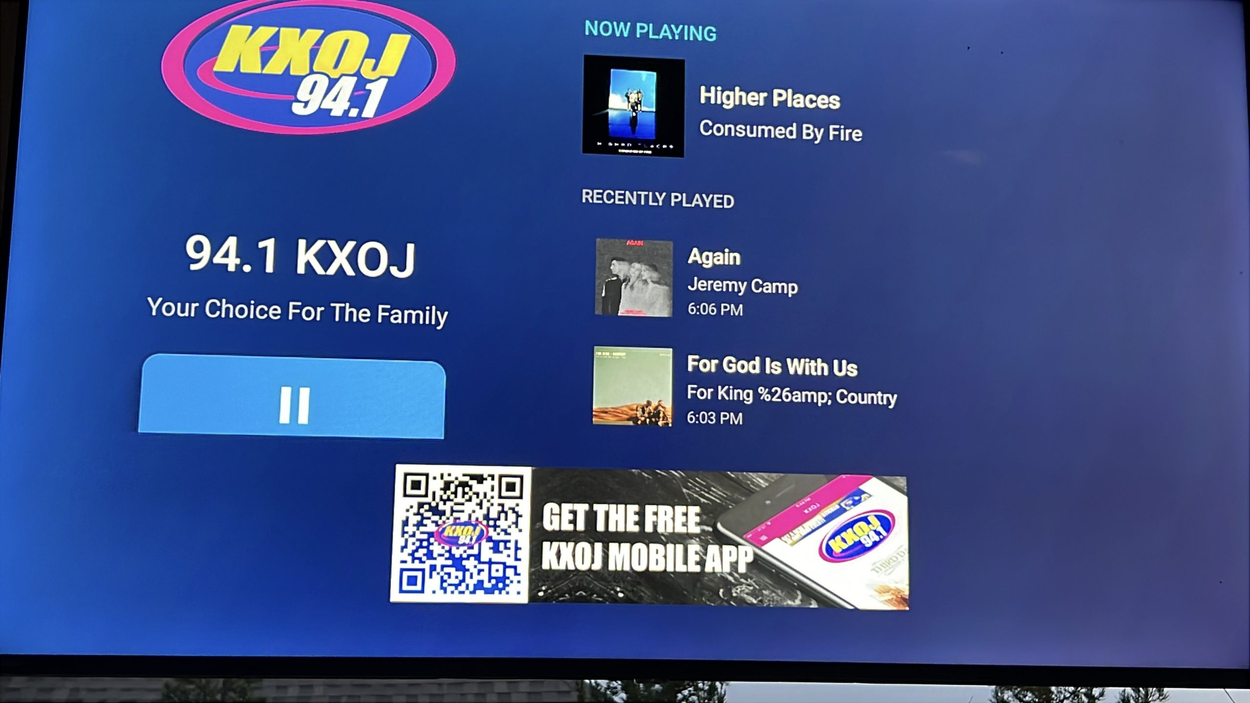 tvOS app submitted to the Apple TV App Store. Recent songs and banner ad.